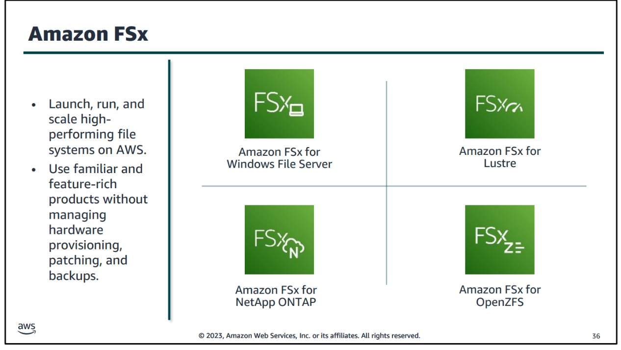 Amazon EBS (Elastic Block Store): Provides block-level storage volumes that can be attached to EC2 instances. EBS volumes are suitable for databases, file systems, and applications that require persistent storage.