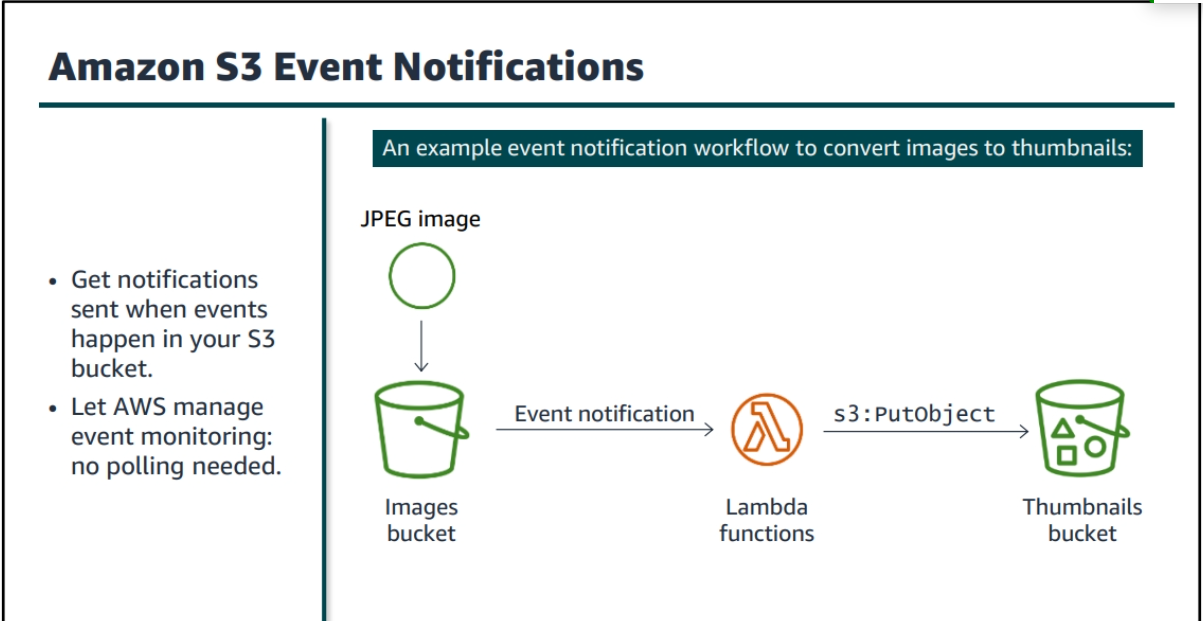 Amazon S3 is a fully managed object storage service that provides highly scalable, durable, and secure storage for objects. S3 is useful for building serverless applications, event-driven applications, and microservices.
