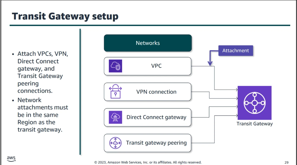 - Transit Gateway is a service that allows you to connect multiple VPCs and on-premises networks together in a hub-and-spoke model. Transit Gateway simplifies network connectivity and reduces operational overhead by providing a single gateway for connecting multiple networks.