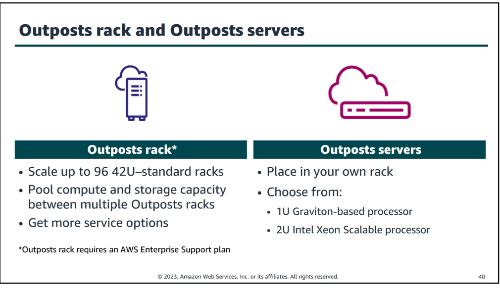- AWS Outposts is a fully managed service that extends AWS infrastructure, AWS services, APIs, and tools to virtually any datacenter, co-location space, or on-premises facility for a truly consistent hybrid experience.