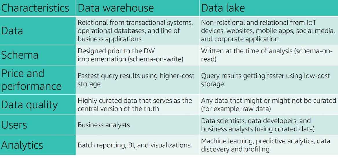 Data warehouse vs Data Lake