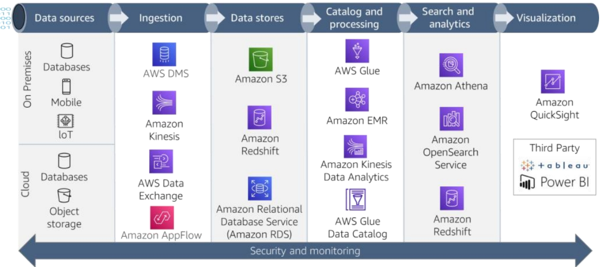 • Amazon Athena – Interactive analytics service that makes it convenient to analyze data in Amazon S3 using Python or standard SQL
