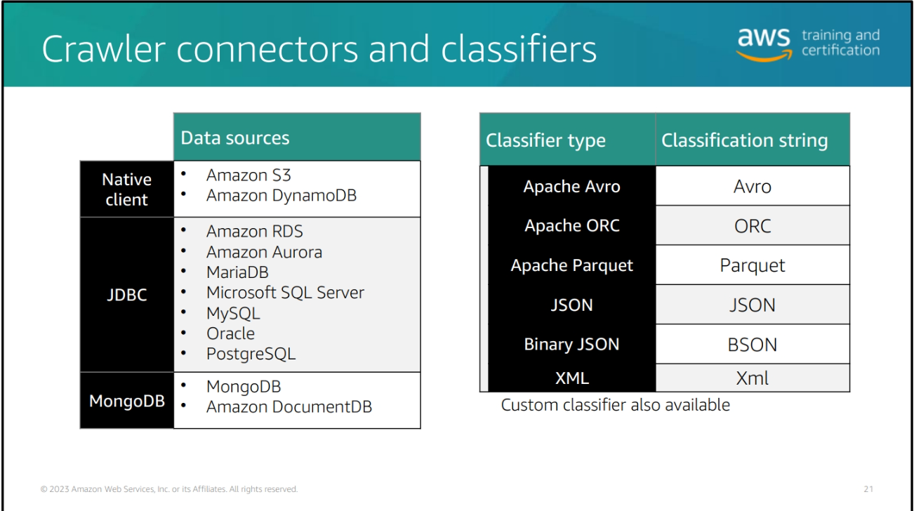 AWS Glue Crawler AWS Glue Crawlers can scan data in all kinds of repositories, classify it, extract schema information from it, and store the metadata automatically in the AWS Glue Data Catalog. AWS Glue Studio is designed to work with both tabular and semi-structured data. Crawlers run as AWS Glue jobs and can be triggered by the scheduler component of AWS Glue.